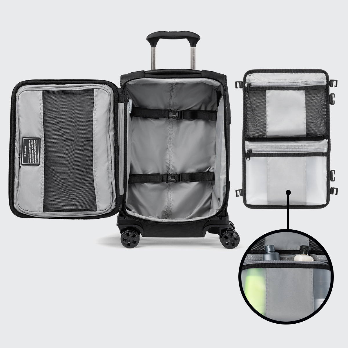 Travelpro luggage often includes convenient features such as removable wet pockets, which are perfect for storing toiletries or damp clothing, and zippered compartments for shoes or delicate items.